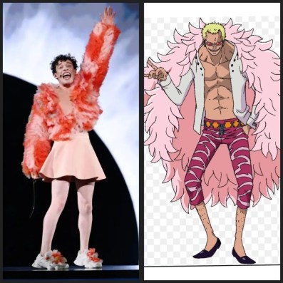 Das Kostüm des Schweizer ESC-Gewinners Nemo erinnert manche an die Manga-Figur Doflamingo aus One Piece (via reddit.com).